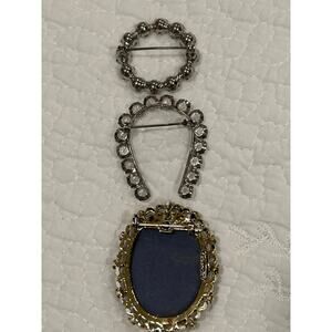 Lot 8 VTG Brooches Pins Cameo Violin Cat Leaf Rhinestone Lucky Horseshoe Event Party Formal Occasion, Vintage Collectors, Round Rhinestone, Rhinestone pins