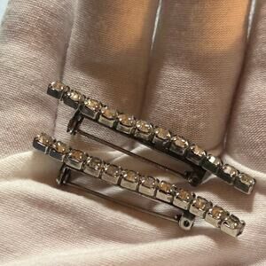 In good vintage condition with working parts. Two Rhinestone horizontal pins.