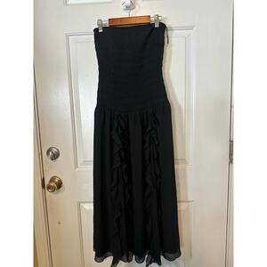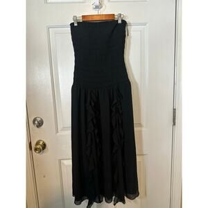 Wilfred Dress Women's Size S Black Strapless Smocked Ruffle Trim A-Line Midi