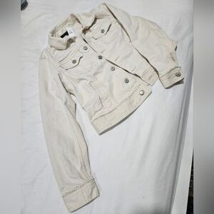 Talbots Womens Scallop Trim Cream Denim Jacket NWT