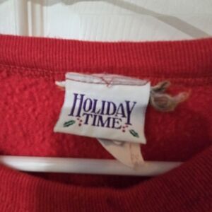 Adorable vintage Holiday Time Christmas sweatshirt featuring teddy bears, presents, snowflakes, and bells — full of nostalgic 90s holiday charm!