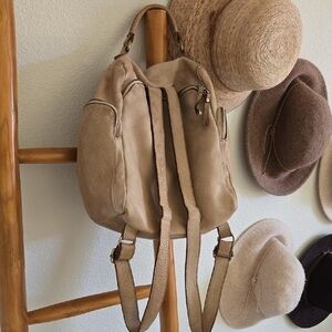 Embrace a blend of style and practicality with this tan Free People leather Bolsa Nova Mia backpack. Crafted for everyday adventures, its minimalist design and soft material make it a versatile accessory. Perfect for those who appreciate a relaxed yet chic look.