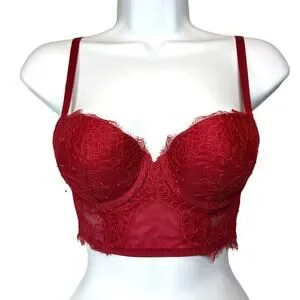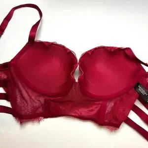 Victoria’s Secret Balconette Bra 32C Strappy Red Lace Long Line Corset Push Up