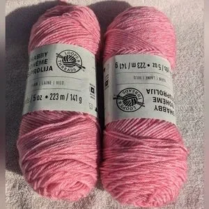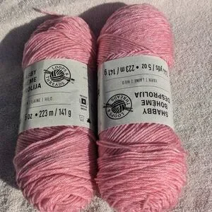 Loops & Threads Shabby Baby Pink Yarn, 2 Skiens Same Dye Lot, New