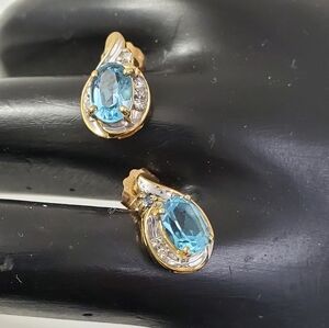 Watch Video / 10K Gold Blue Topaz And Diamond Earrings