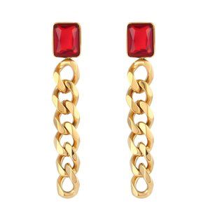 Red Zircon Gold Chain Drop Earrings Jewelry Hypoallergenic