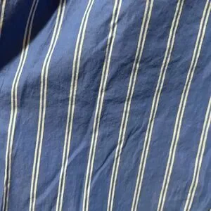Like new just wrinkled from being folded and put away. No signs of damage or wear. Made of 100% cotton.