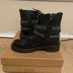 Steve Madden Black Combat Boots with zipper/lace-up with rhinestones.