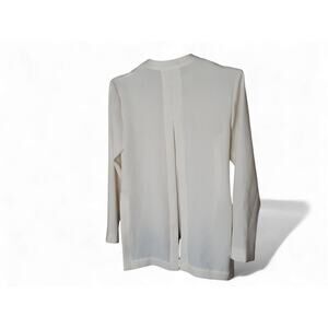 Elegant long-sleeve jumpsuit from Japanese designer Yoko Chan featuring a clean, minimalist silhouette with an architectural cape overlay that drapes over the back and slightly frames the front shoulders. Crafted from high-quality Japanese fabric in a timeless ivory and black color-block design. Concealed back zipper and straight-leg fit for a polished, modern look.