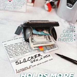 Features: This compact vegan leather wallet has a cool, vintage vibe with its cassette tape design and bold features. It’s slim, lightweight, and perfect for carrying your essentials while making a statement. Designed with a funky boombox zipper and a nostalgic pattern, it’s both functional and totally adorable.