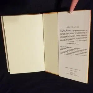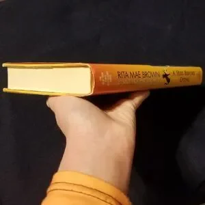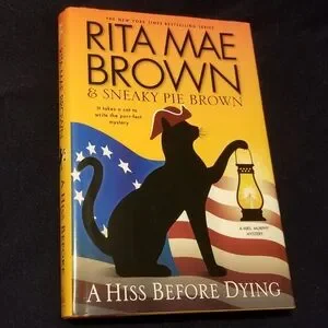 A hardcover of Rita Mae Brown's A Hiss Before Dying, an autumn-themed Mrs. Murphy mystery.