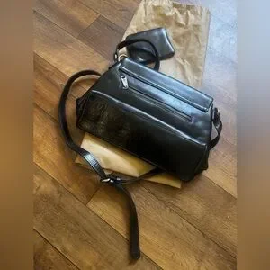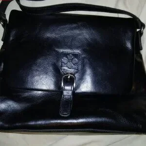 This Patricia Nash crossbody bag in black offers a sleek and structured design, perfect for versatile styling. The bag features a flap closure with a silver-toned clasp, adding a touch of elegance to its classic look. Its adjustable strap allows for comfortable crossbody wear, making it an ideal choice for any occasion.