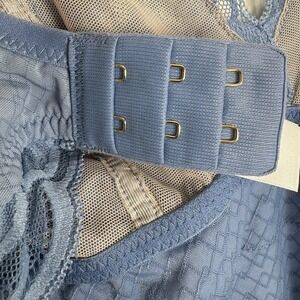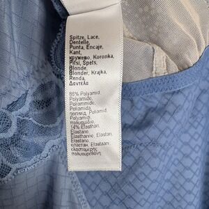 Hanro Women's Marilyn Bodysuit Lace Trim Open-Back Medium in Dusty Blue in good condition.