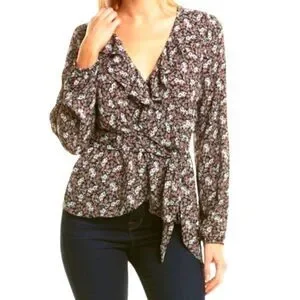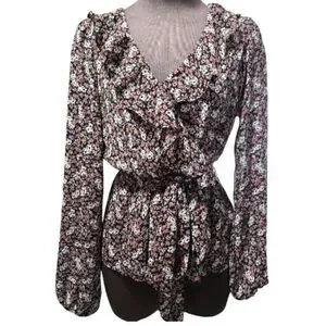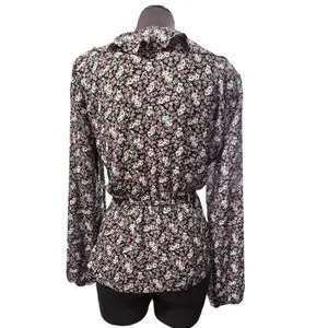 EC MAX STUDIO FLORAL WRAP SHIRT W/ ELASTIC WAIST SZ.L