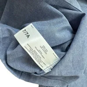 Long sleeve chambray shirt. Ruffle on chest. Elastic cuffs. Keyhole on back with button closure. Navy blue floral leggings.