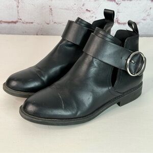 H&M Divided Faux Leather Black Cut-out Low Heel Moto Ankle Boot Size 5.5