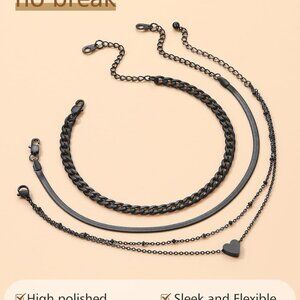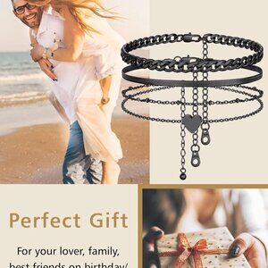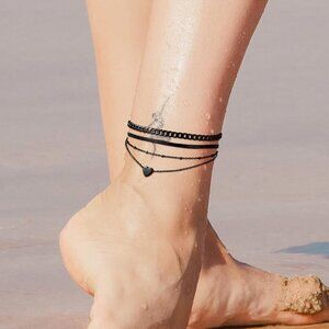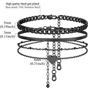 Features: Elegant double layer design crafted from durable 316L stainless steel, featuring a secure lobster claw clasp. Includes a 3mm herringbone chain, a beaded heart anklet, and a 5mm Cuban chain—perfect for adding charm to any look. Water-resistant, tarnish-proof, and safe for sensitive skin.