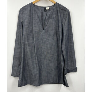 J Crew Shirt Womens Blue Pullover Denim Blue Long Sleeve Tunic Size 8