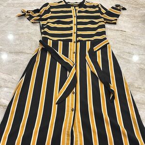 NEW Who What Wear Midi Shirt Dress XS | Marigold Stripe | Tie Waist