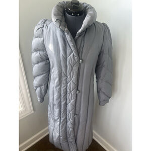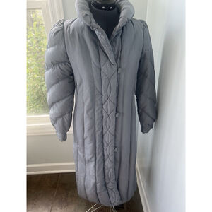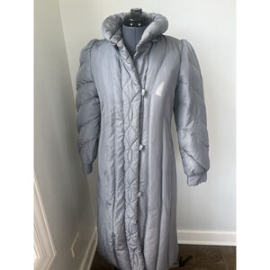 Vintage Windsor Bay Long Gray Puffer Coat JC Penney Quilted Winter Jacket S 80’s