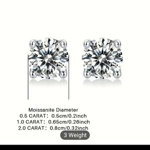 Sparkling .5 CT Moissanite Diamond Silver Stud Earrings. NWT