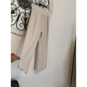 Abercrombie & Fitch Waffle Knit Cropped Lounge Wide Leg Pant Beige Oatmeal Small