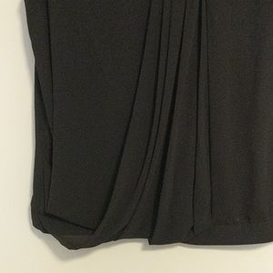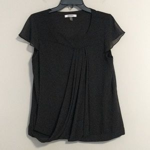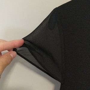Beautiful DKNYC BLACK SHORT OR CAP SLEEVE TOP. Sleeves are sheer and very pretty beautiful gather in the front down to the tummy area which gets wider and is so comfortable. Size medium arm pin to armpit 18 in across length 26 in long