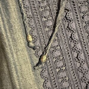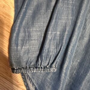 Stylish Chambray blue soft denim long sleeve top with lace-up detail & silver accent beads. Perfect for casual wear.