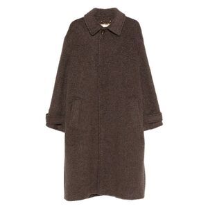 Golden Goose "Journey" coat in a wrinkled wool blend, with floral brooch, single-breasted fastening with front buttons