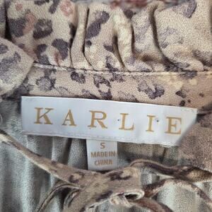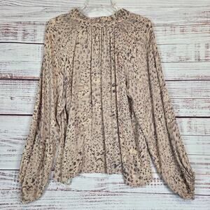 Karlie Dusty Rose Peasant Blouse Ruched V-Neck S Balloon Sleeve Top