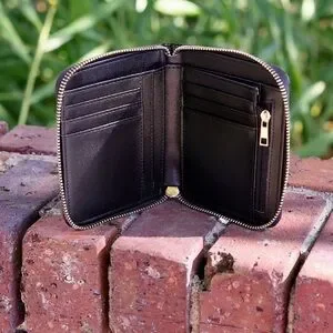 The Blakely Wallet in Black EC offers a sleek, embossed croc-textured design perfect for everyday elegance. Featuring a full zip closure, it securely holds your essentials inside—card slots, a bill fold, and a zippered coin pocket—all neatly organized for convenience. The classic style is enhanced by a refined gold logo and zipper, making it a stylish yet functional accessory for any occasion. Dimensions: * 5" Wide * 4" Height * 1.15" Thick when zipped
