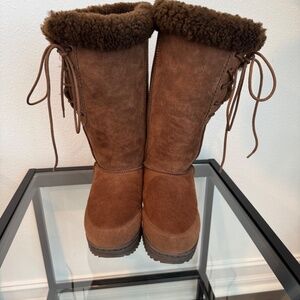 UGG Wild Goose Premium Lace Boot Chestnut Leather Sheepskin Womens 7 Mens 6. NWOB. Cozy, warm, winter boots, stylish