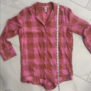 Victoria's Secret Pink and Gold Plaid Flannel Sleep Romper. Sz S