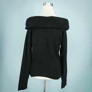 Ann Taylor Size Large L Black Rhinestone Jewel Detail Off The Shoulder Long Sleeve Silk Cotton Cashmere Angora Blend Knit Pullover Sweater NEW- Style 129491