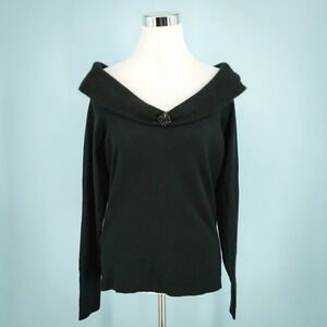 Ann Taylor Size Large L Black Rhinestone Off The Shoulder Silk Cashmere Sweater