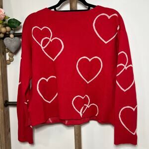 Philosophy Red Pink Hearts Long Sleeve Crew Neck Sweater Size Large