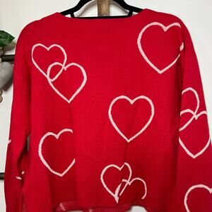 Philosophy Red Pink Hearts Long Sleeve Crew Neck Sweater