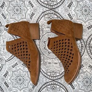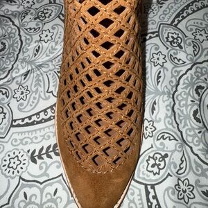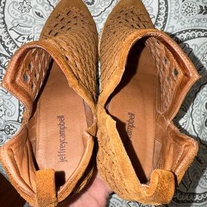 Beautiful Jeffrey Campbell brown/rust Leather Taggart open lattice ankle boots. Size 7.5. Excellent Condition!! Step out in style with these chic brown suede ankle boots. Perfect for any occasion, they offer both comfort and elegance.
