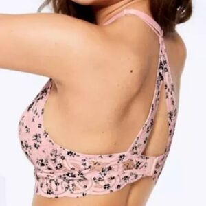 Victorias Secret PINK Push Up Padded High Neck Floral Lace Bralette bra pink L