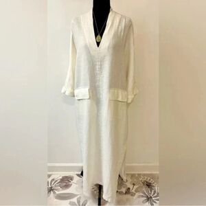 Soft Surroundings Kavala 100% Linen Dress, Creamy White, great preowned condition