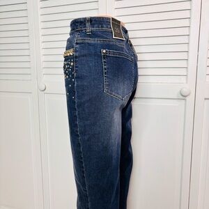 New CHICO’S Black Label Denim Navy Embellished Denim Pant Size 14