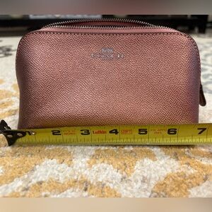 COACH Crossgrain Leather Cosmetic Case Metallic Dark Blush