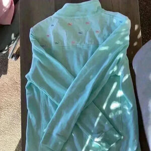Very good condition vineyard vines Long sleeve zipper sweater whales on shoulders and On back in very good condition small spot on left arm. I haven’t tried to scrub it out. So it might come out. Not sure A3
