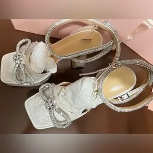 Elegant white heels with sparkling silver crystal details. Perfect for glamorous events.