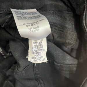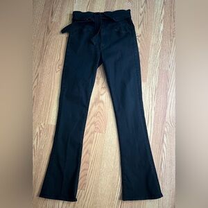 Plead the fifth. A classic skinny flare with a super high rise, folded waistline that ties and a long 34-inch inseam. Made from stretch denim, Not Guilty is our bestselling black wash.