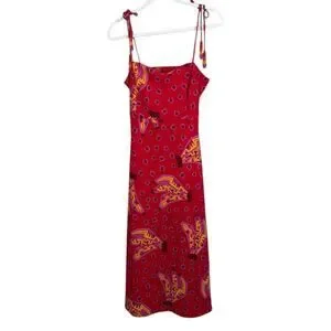 House of Harlow 1960 Women's Red Banana Print Spaghetti Strap Midi - Size S