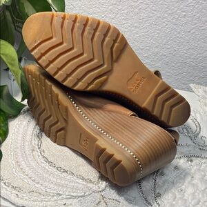Step out in style with these elegant brown leather peep toe shoes from Sorel. Perfect for any occasion, these shoes offer both comfort and sophistication. Only light signs of wear.