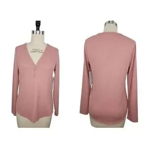 ATHLETA Wind Down Sleep Top Pink Sz M NWT Retail $49 Long Sleeve Waffle Henley