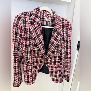 Lioness Red and Black Tweed Blazer with Gold Buttons