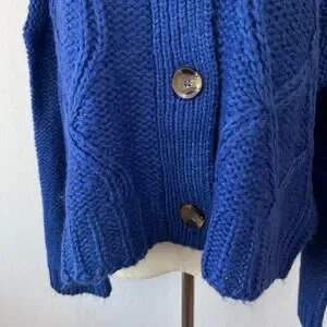 NWT RD Style Oversized Cable Knit Button Up Cardigan size Medium Royal Blue